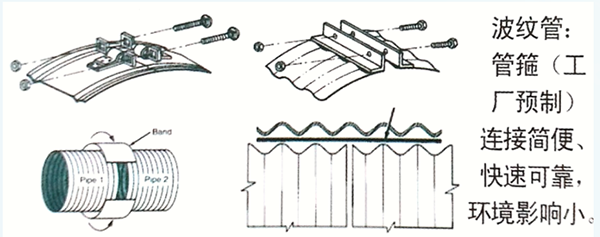 镀锌管由于管节长,管箍(工厂预制)连接简便、快速可靠,受环境影响小。直径1200㎜的管,最快速度一天可安装长度400米;而水泥管打垫层、封口、包角、养生等时间长,每天最多安装长度40米;塑料管是热熔法连接,受气候、温度影响大,一天只能安装长度150米。